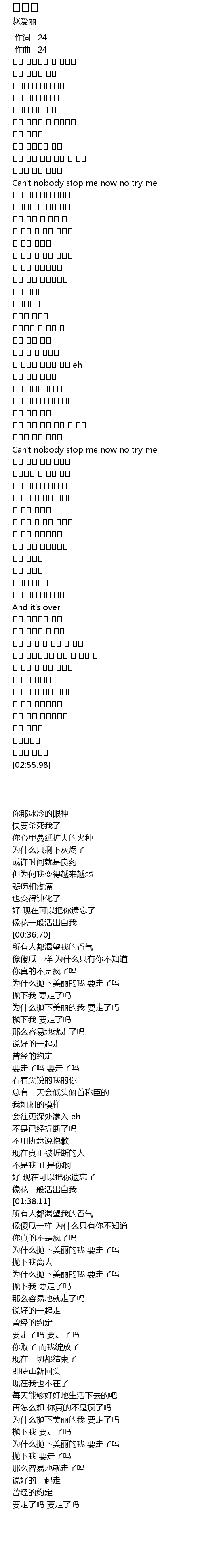 | [00:36.70] | Can' t nobody stop me now no try me |