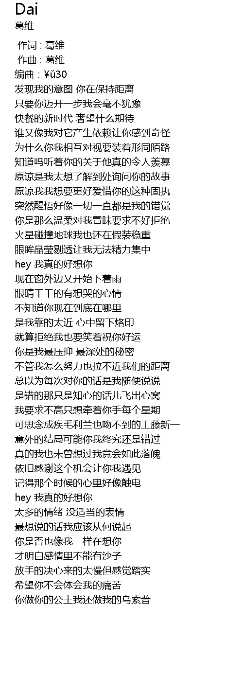 | [01:39.190] | 我要求不高只想牵着你手每个星期 |