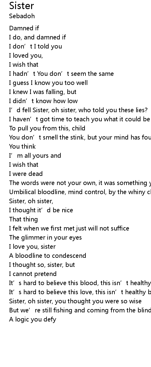 | I’d fell Sister, oh sister, who told you these lies? | |