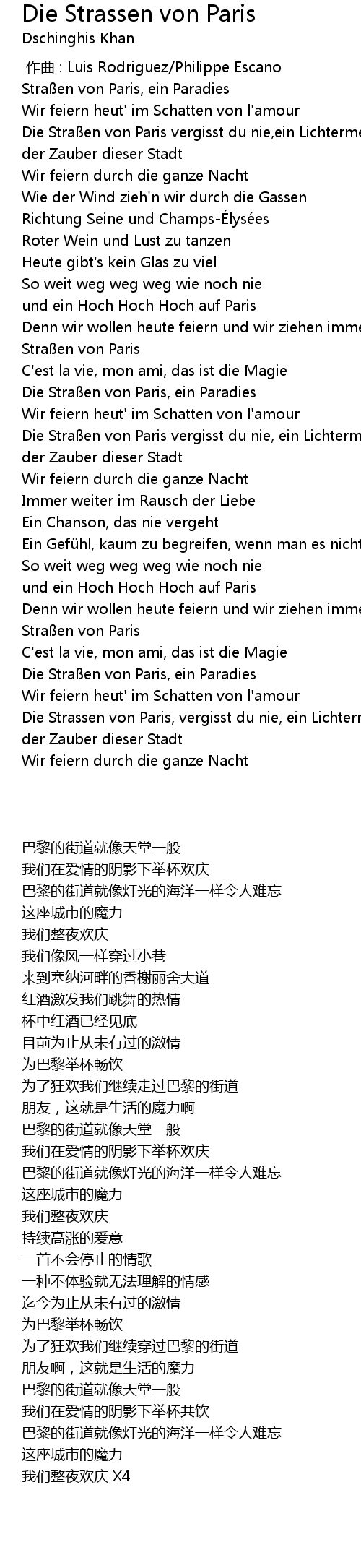 | [03:27.400] | Die Strassen von Paris, vergisst du nie, ein Lichtermeer |