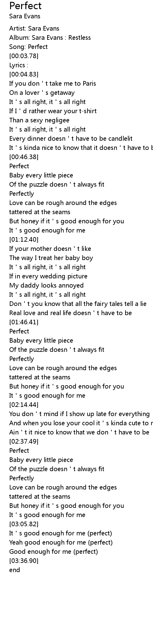 | [03:27.01] | Good enough for me perfect |