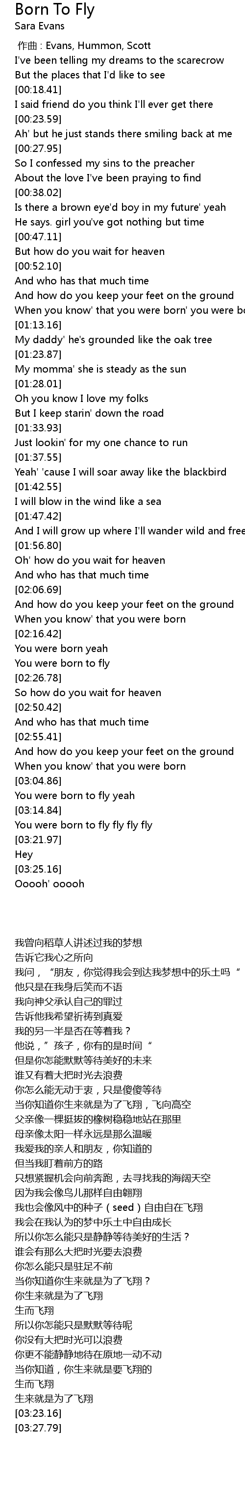 | [03:17.10] | You were born to fly fly fly fly |