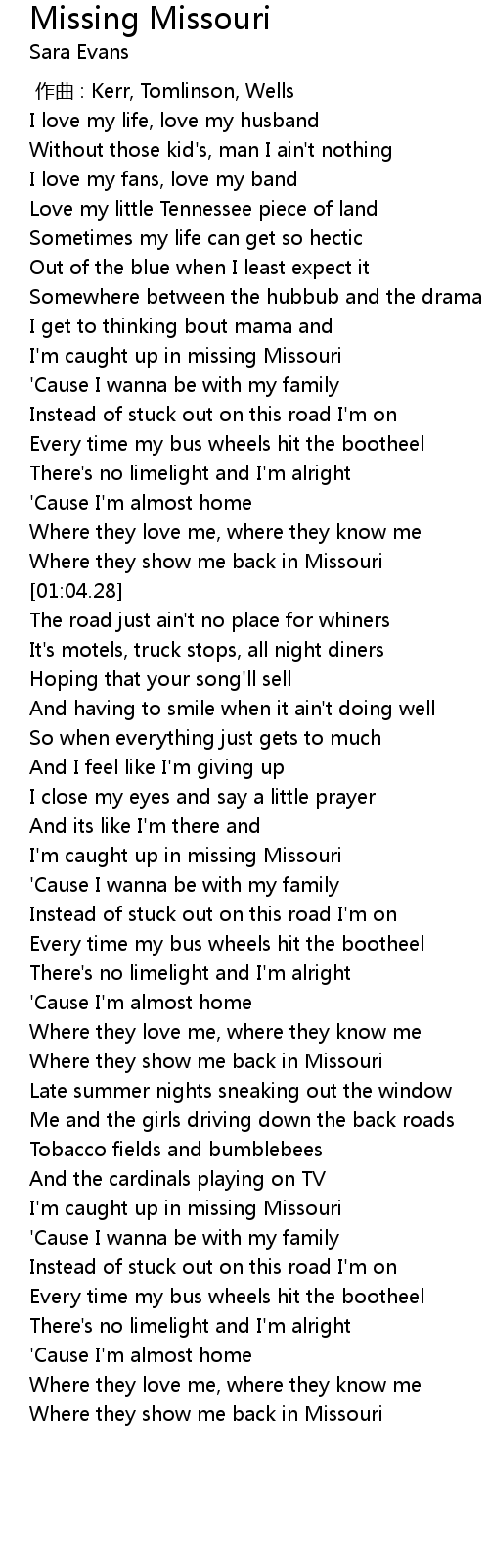 | [00:47.50] | Every time my bus wheels hit the bootheel |