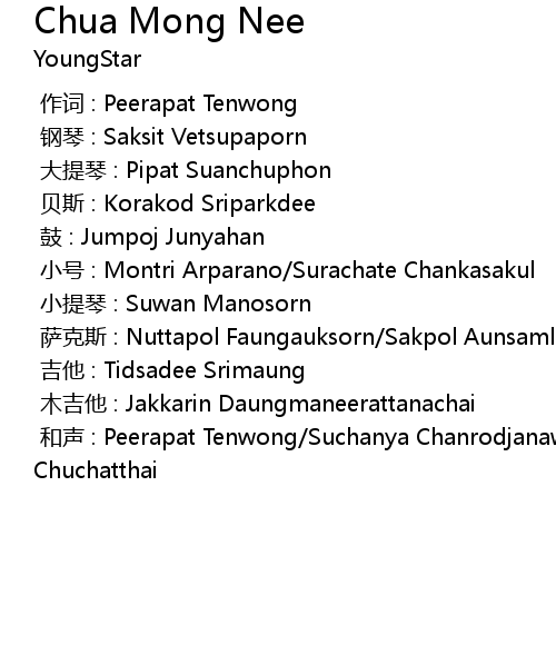| [00:00.00-1] | 和声 : Peerapat Tenwong/Suchanya Chanrodjanawut/Supaporn Chuchatthai |