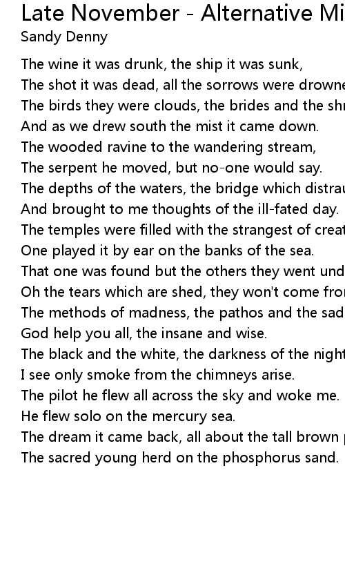 Late November - Alternative Mix (Island Sampler 'El Pea' IDLP1 Lyrics