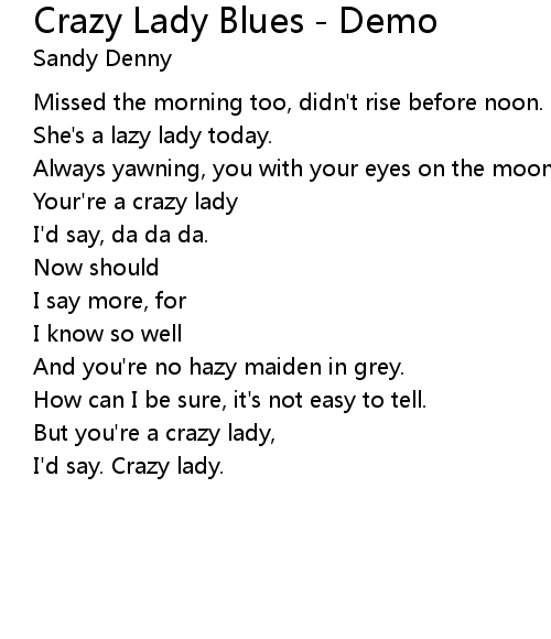 | Song | Crazy Lady Blues - Demo |