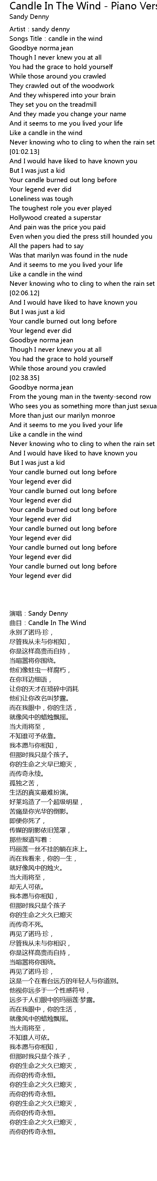 | [03:02.00] | Like a candle in the wind |