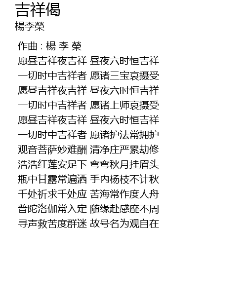 | [01:20.921] | 愿昼吉祥夜吉祥 昼夜六时恒吉祥 |
