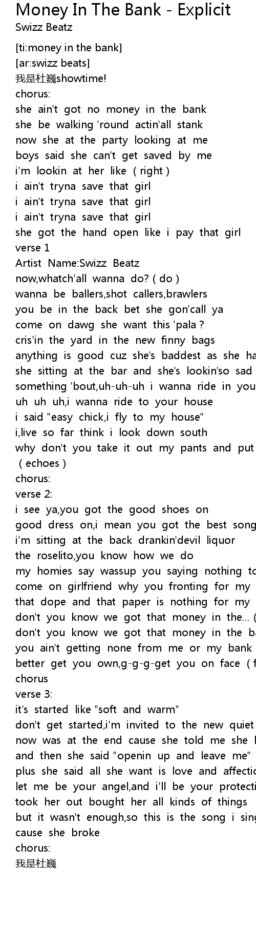 | Song | Money In The Bank - Explicit |