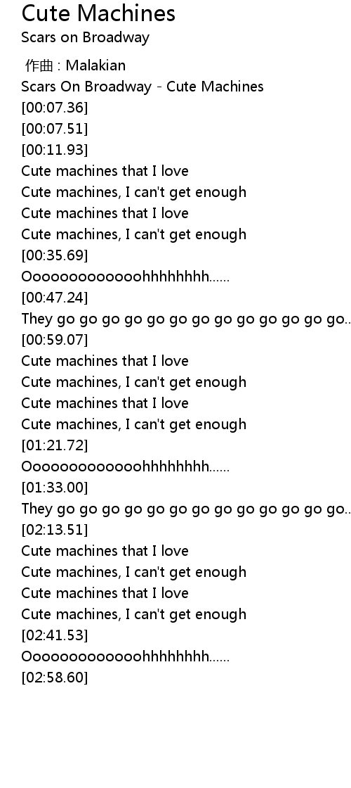 | [00:01.10] | Scars On Broadway - Cute Machines |