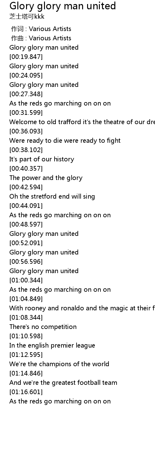 | [00:20.098] | Glory glory man united |