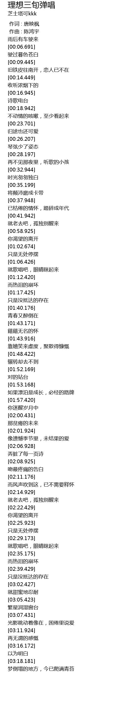 | [00:01.000] | 作曲 : 陈鸿宇 |