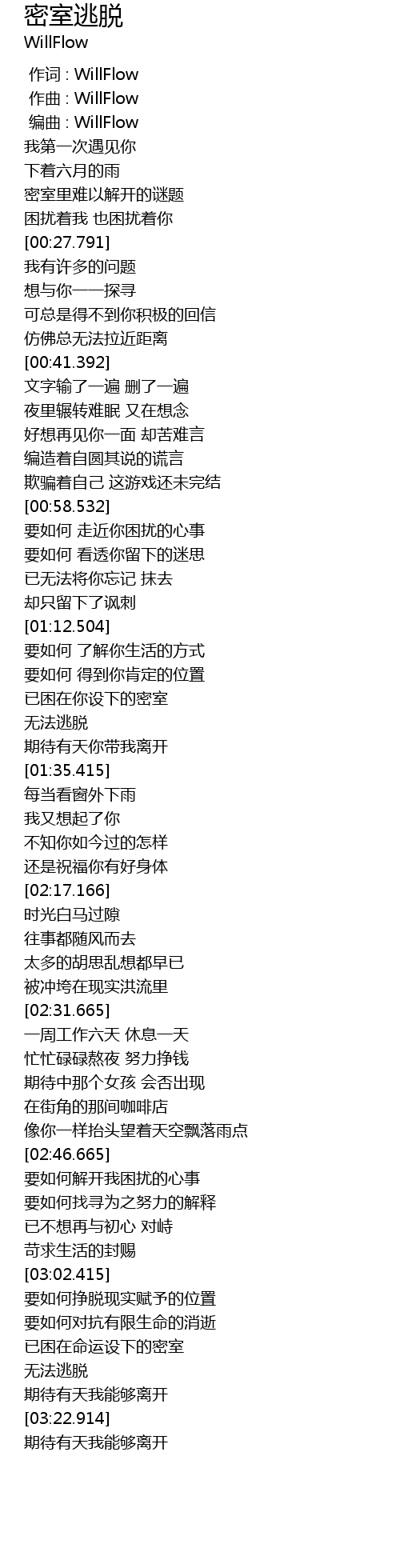 | [00:00.000] | 作词 : WillFlow |