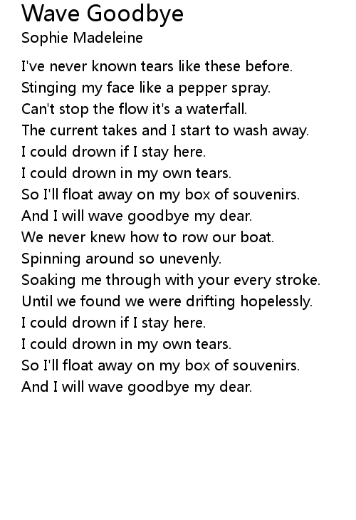 And I will wave goodbye my dear. |