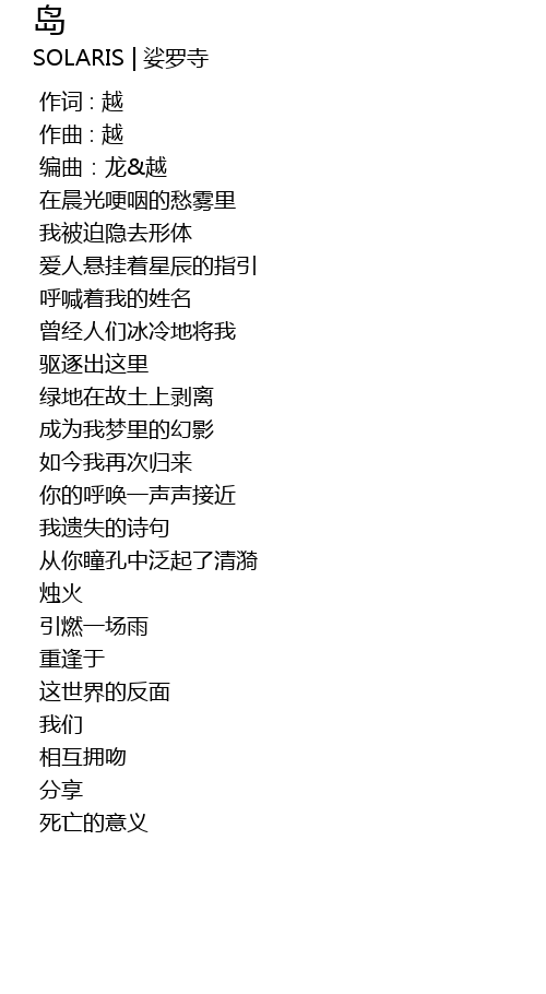 | Artist | SOLARIS | 娑罗寺 |