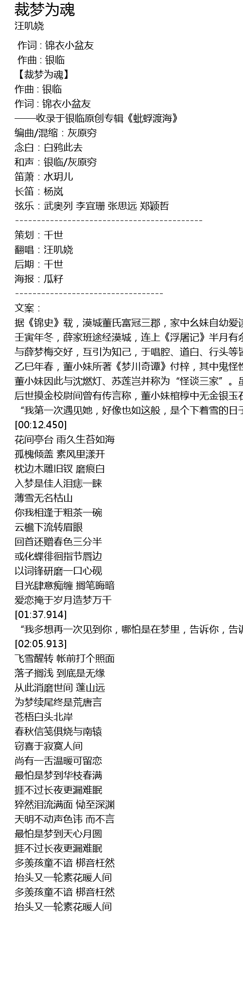 | [02:26.662] | 为梦续尾终是荒唐言 |