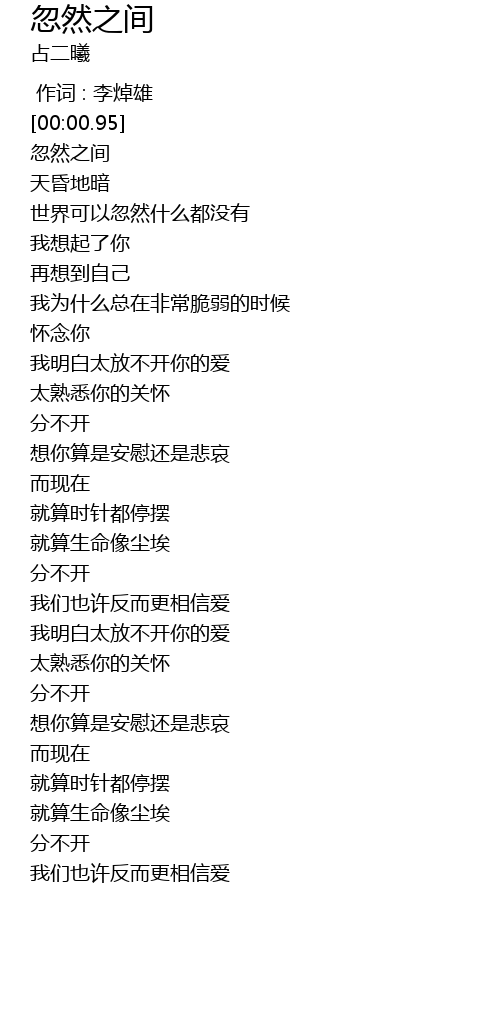 | [00:00.00] | zuò cí : lǐ chāo xióng |