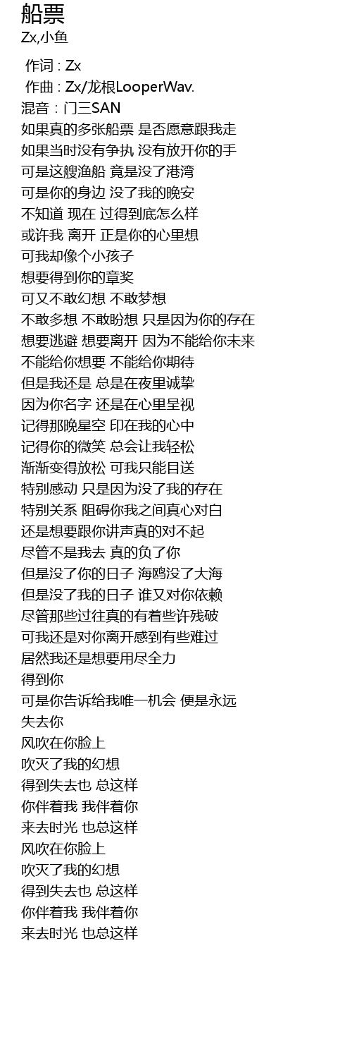 | [00:23.947] | 如果真的多张船票 是否愿意跟我走 |