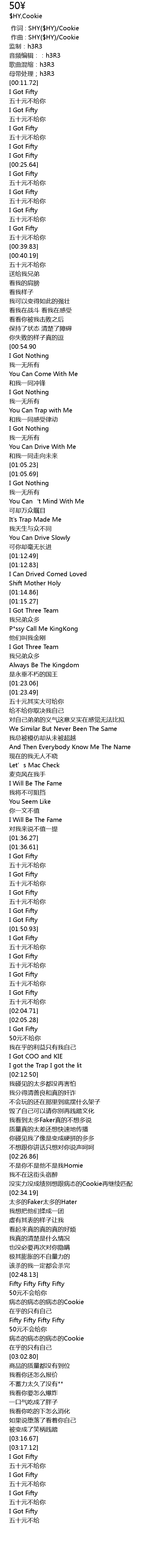 | [01:50.05] | I Got Fifty |