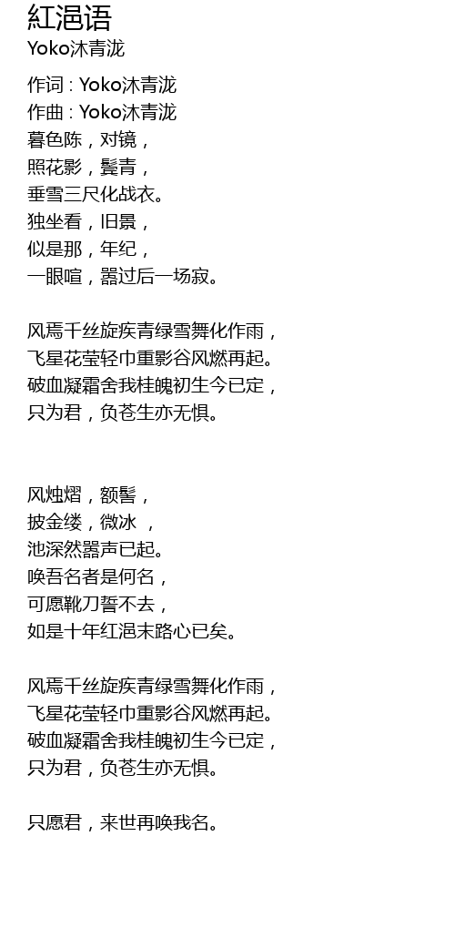 | zhǐ yuàn jūn, lái shì zài huàn wǒ míng. |