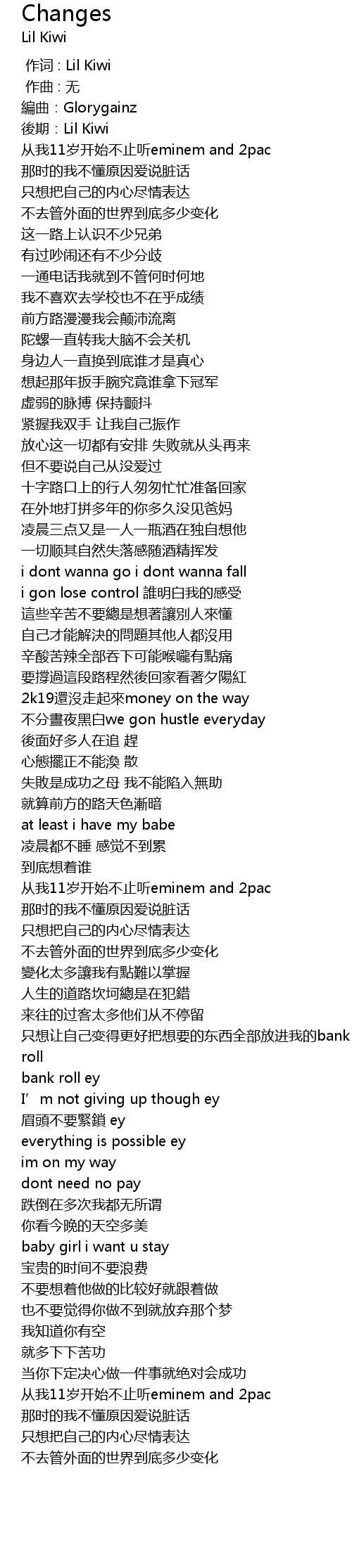 | [00:00.000] | zuò cí : Lil Kiwi |