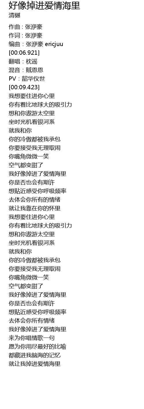 | [00:47.671] | 我好像掉进了爱情海里 |