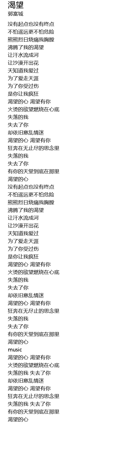 | [00:59.94] | 渴望的心 渴望有你 |