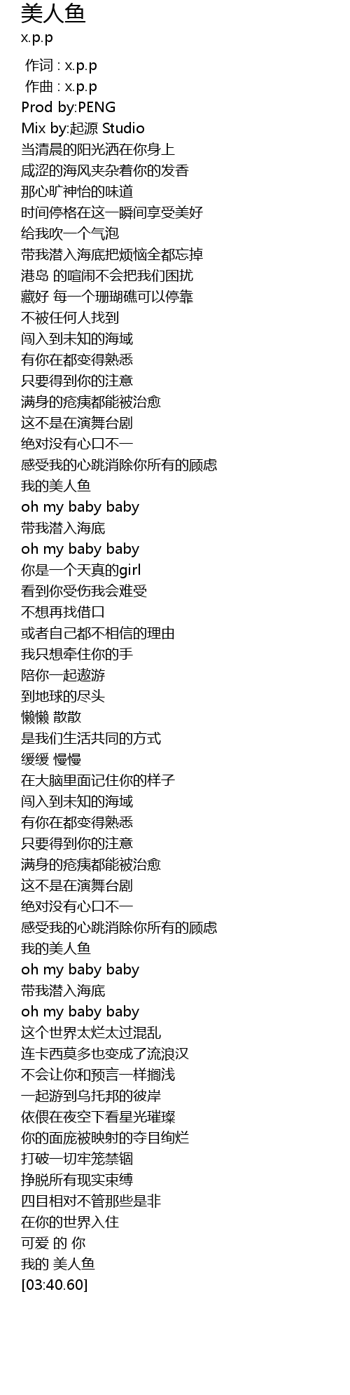 | [00:00.00] | 作词 : x.p.p |