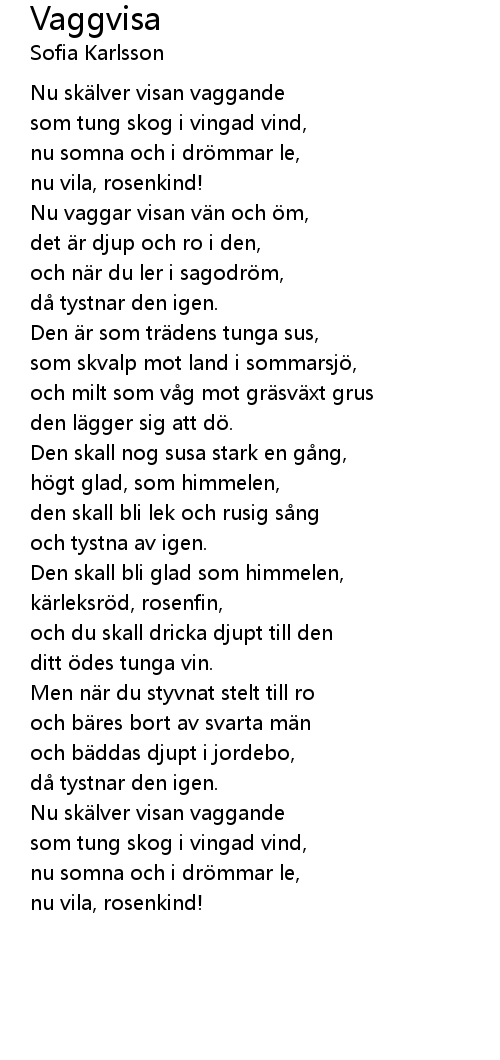 | [00:42.822] | Nu vaggar visan vän och öm, |