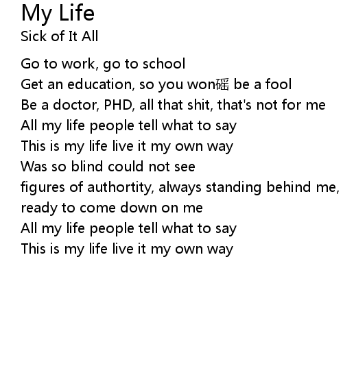| This is my life live it my own way |