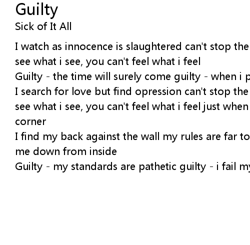 Guilty - the time will surely come guilty - when i pay a heavy price - guilty |