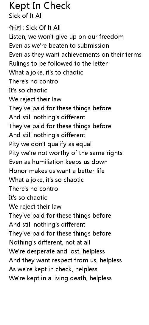 | 作词 : Sick Of It All | |