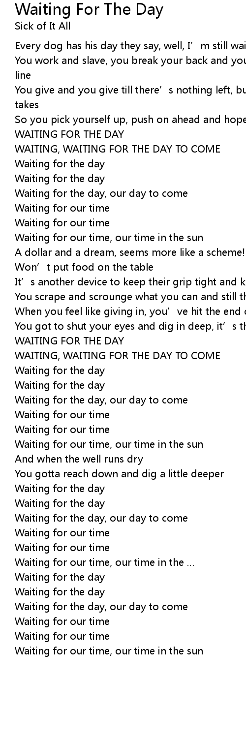 | WAITING FOR THE DAY | |