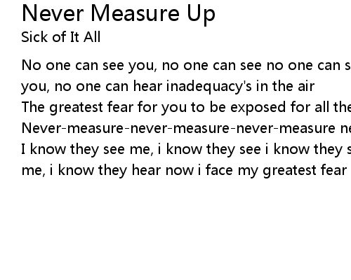 | Song | Never Measure Up |