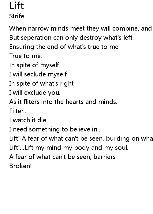 | Lift!...Lift my mind my body and my soul. | |
