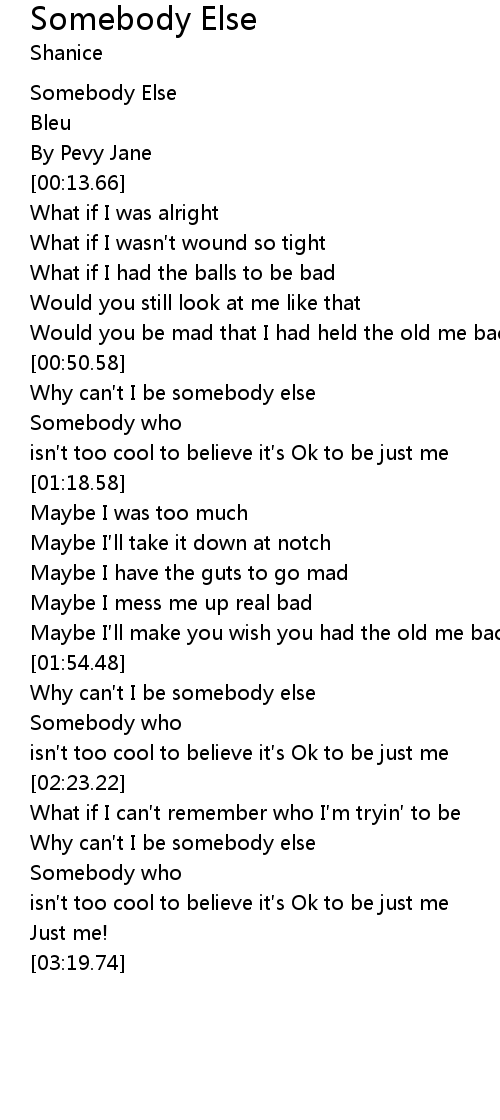 | [00:52.21] | Why can t I be somebody else |