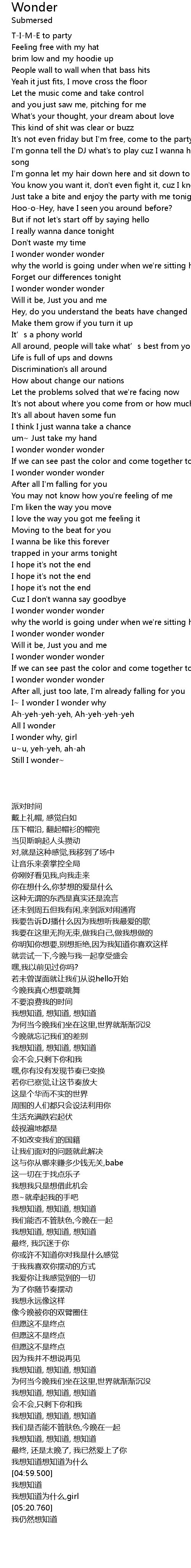 | [02:31.700] | I wonder wonder wonder |