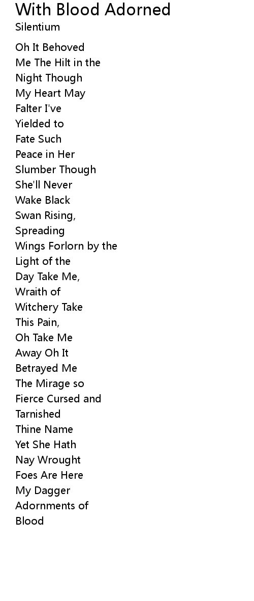 | Song | With Blood Adorned |