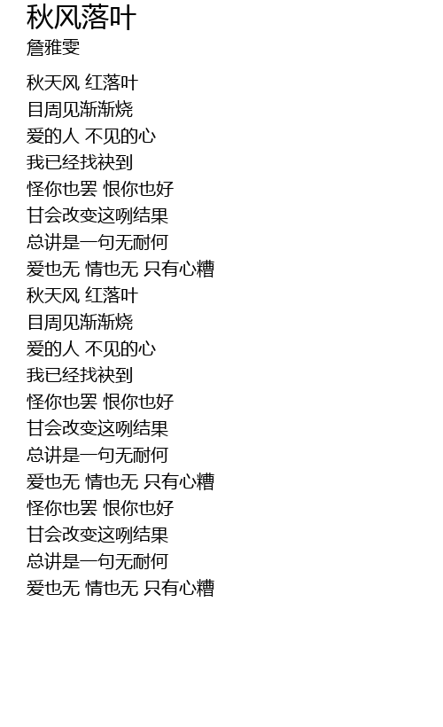 | [00:30.700] | qiū tiān fēng hóng luò yè |
