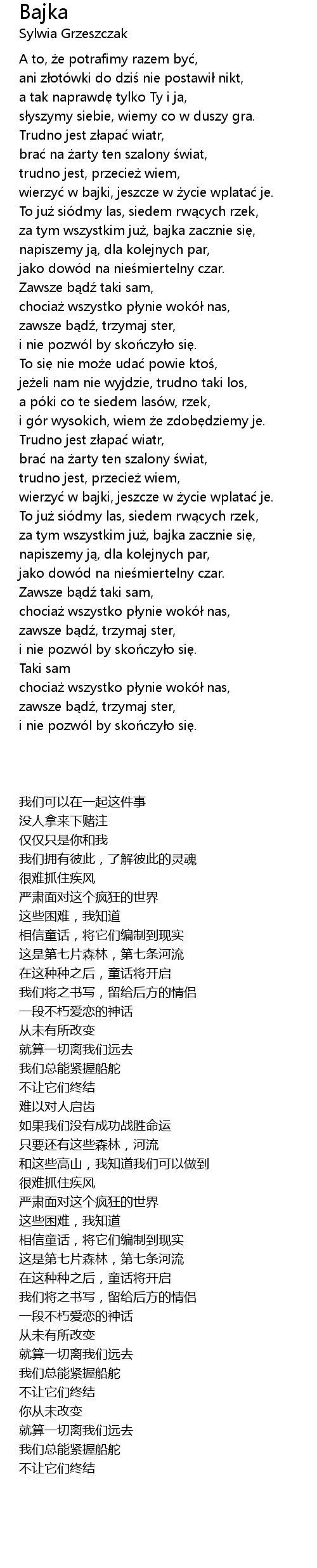 | [01:51.33] | wierzyć w bajki, jeszcze w życie wplatać je. |