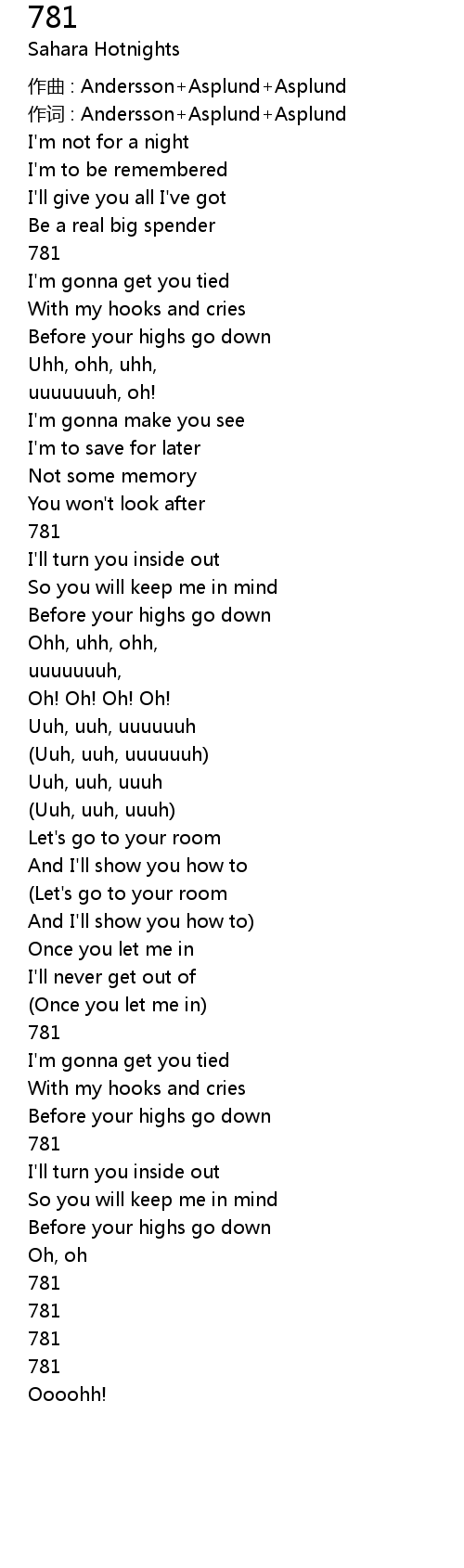 | 作词 : Andersson+Asplund+Asplund | |