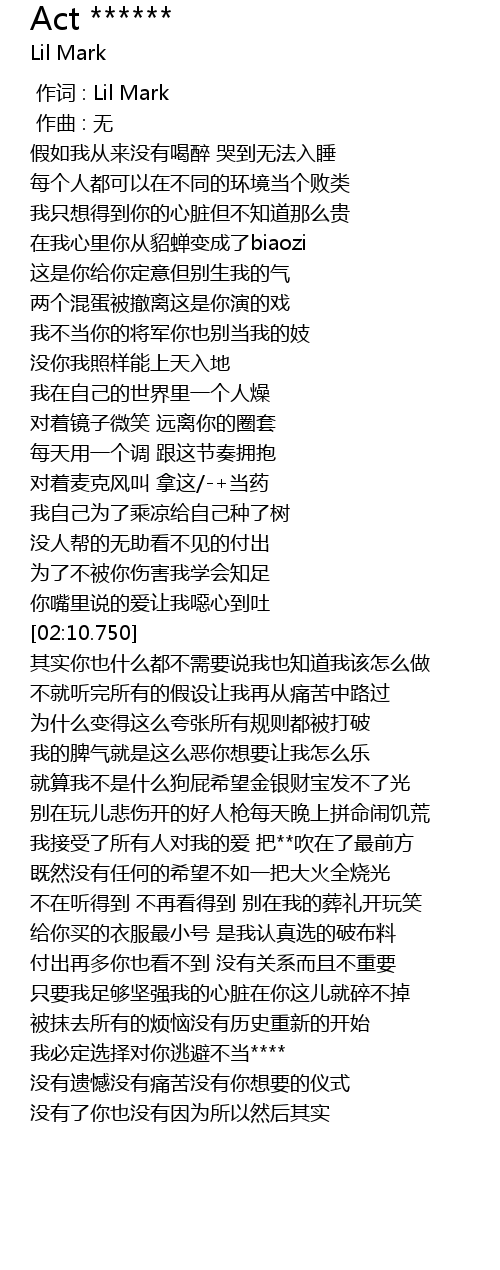 | [02:46.701] | 我必定选择对你逃避不当**** |