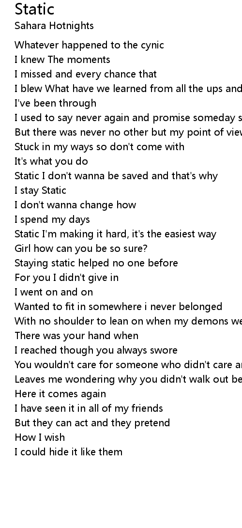 Static I don't wanna be saved and that's why |