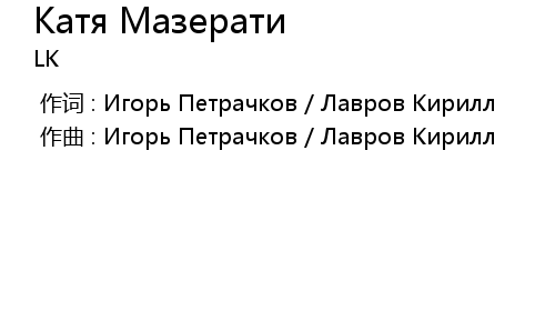 | [00:00.00-1] | 作词 : Игорь Петрачков / Лавров Кирилл |