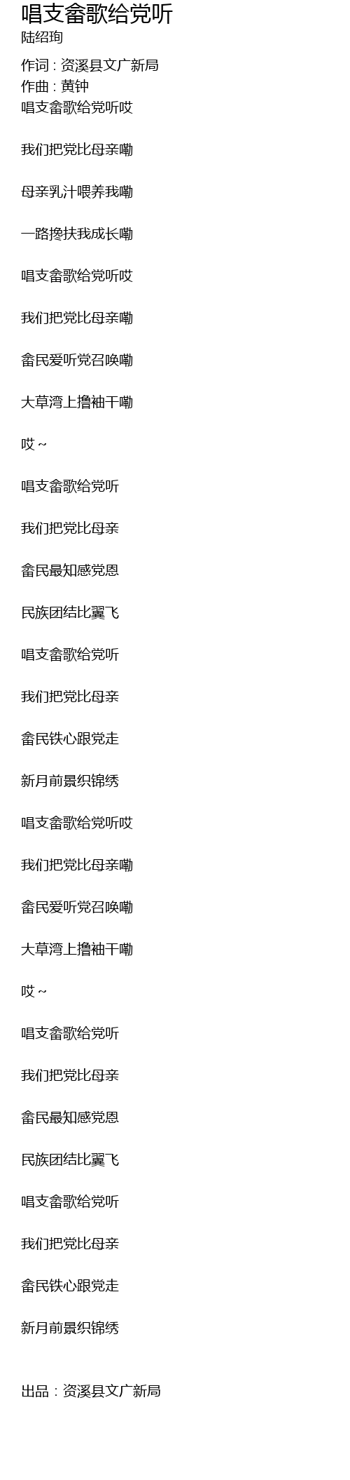 | chàng zhī shē gē gěi dǎng tīng āi | |
