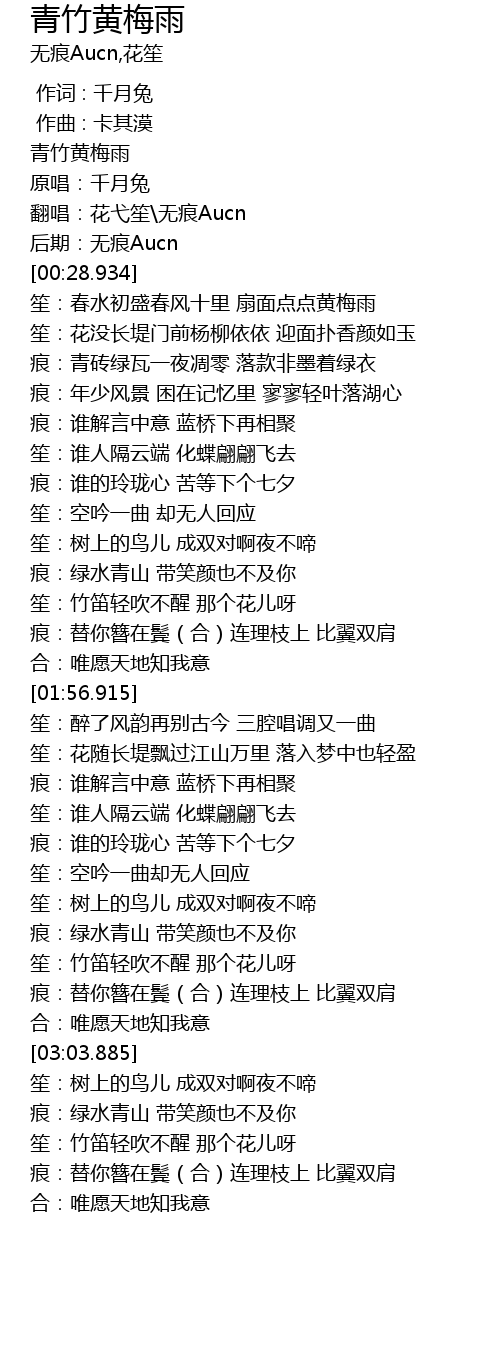 | [00:04.933] | 青竹黄梅雨 |