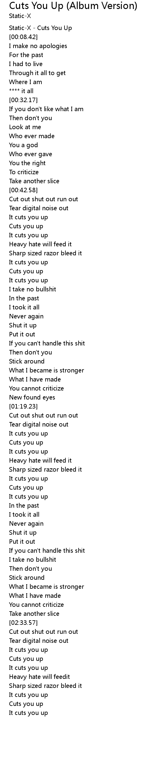 | [00:07.91] | Static-X - Cuts You Up |