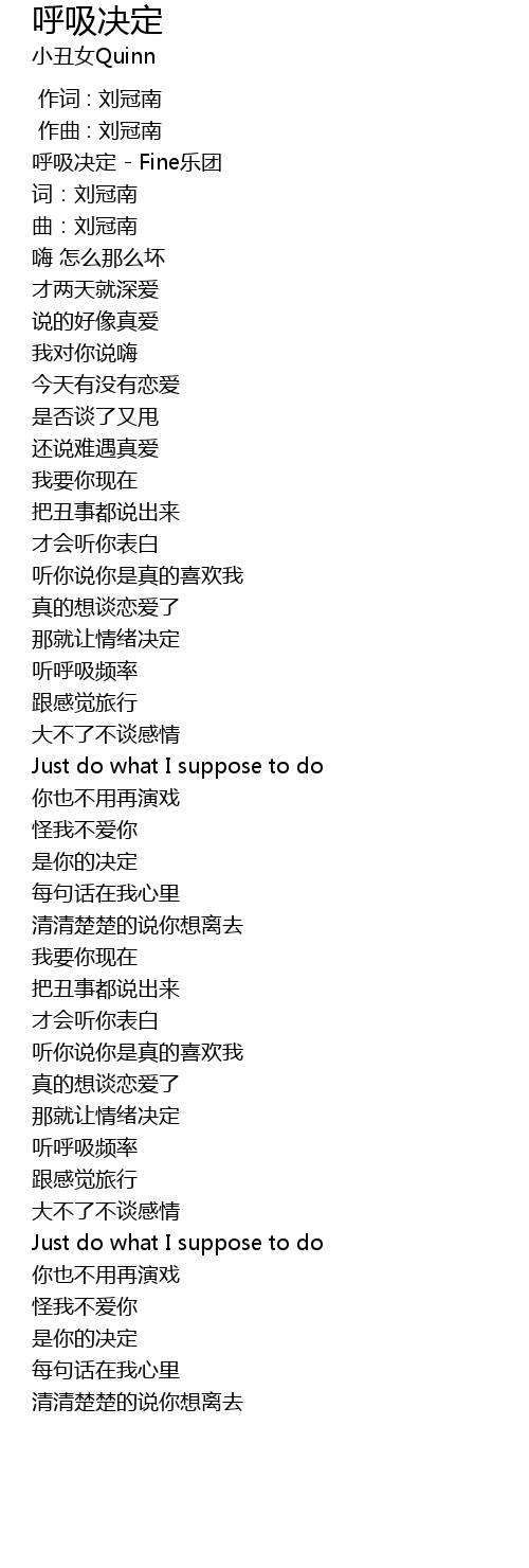 | [00:00.15] | 呼吸决定 - Fine乐团 |