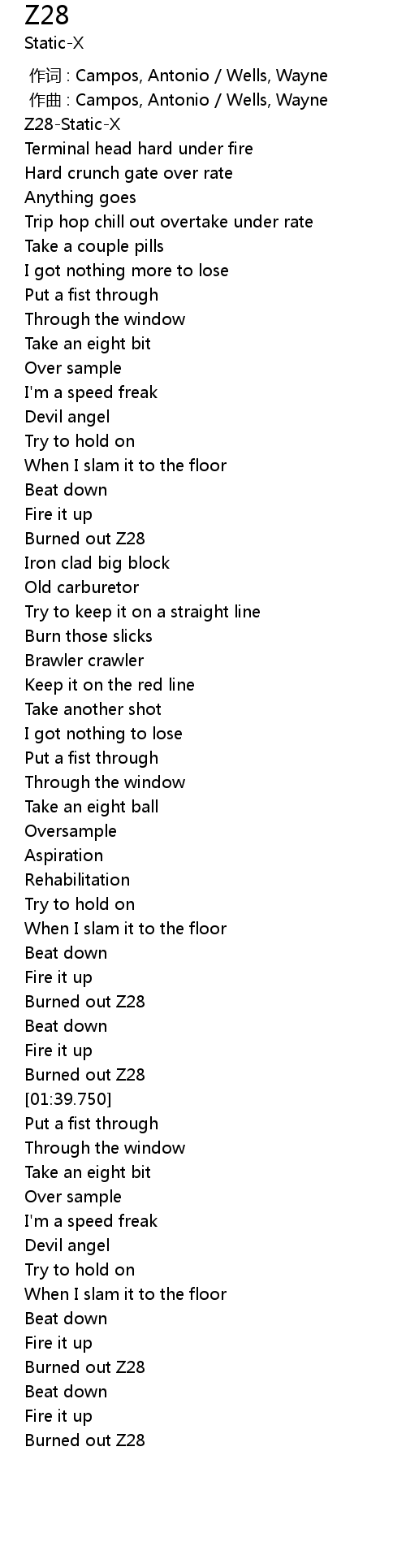 | [00:00.000] | zuo ci : Campos, Antonio Wells, Wayne |
