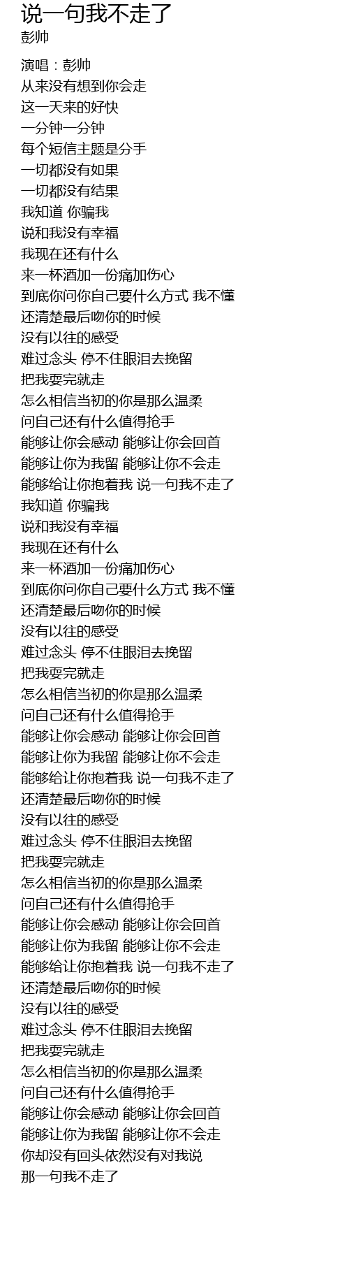 | [02:40.83] | néng gòu gěi ràng nǐ bào zhe wǒ shuō yī jù wǒ bù zǒu le |